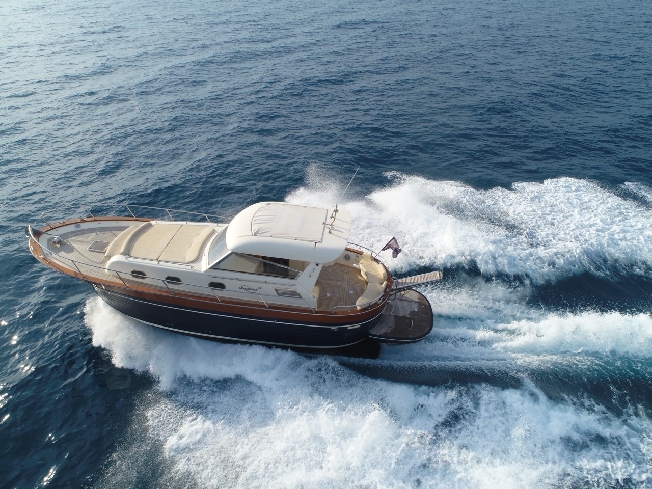 The Apreamare 38 embodies the true spirit of Mediterranean boating, combining traditional gozzo lines with contemporary luxury. Its spacious cockpit and sunbathing areas provide the perfect setting for relaxing at sea, while the high-quality handcrafted finishes reflect the brand’s renowned Italian craftsmanship. Inside, the layout is designed for comfort and functionality, offering a welcoming salon, a well-equipped galley, and comfortable accommodations for extended stays. Powered by reliable engines, the Apreamare 38 delivers a quiet and balanced cruising experience, making it ideal for those seeking elegance, practicality, and unmistakable style on the water.