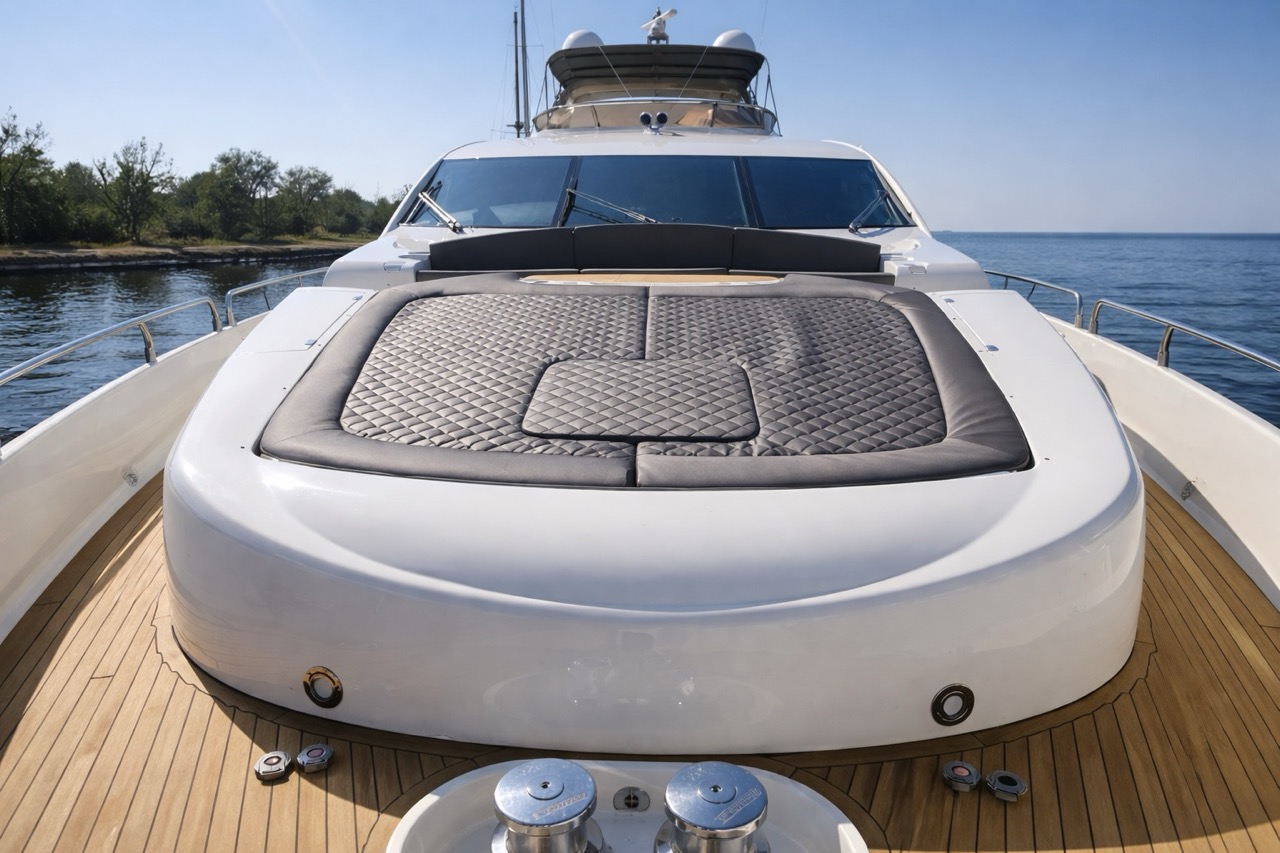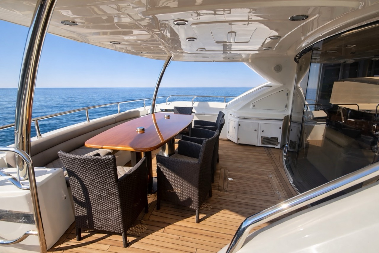 The Sunseeker 86 Yacht is a striking flybridge motor yacht that combines elegant exterior lines with generous outdoor living spaces and a refined, contemporary interior. Designed for both private cruising and entertaining, she offers expansive decks, a spacious aft cockpit dining area, a large flybridge, a foredeck sunbathing area, and a wide bathing platform that enhances life on the water. Inside, the yacht is typically configured to accommodate up to 8 guests in 4 cabins, with separate crew quarters, making her an excellent option for extended cruising in full comfort and style.