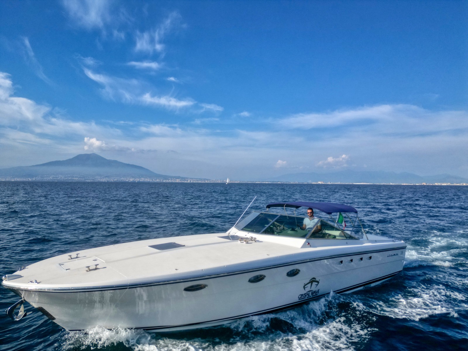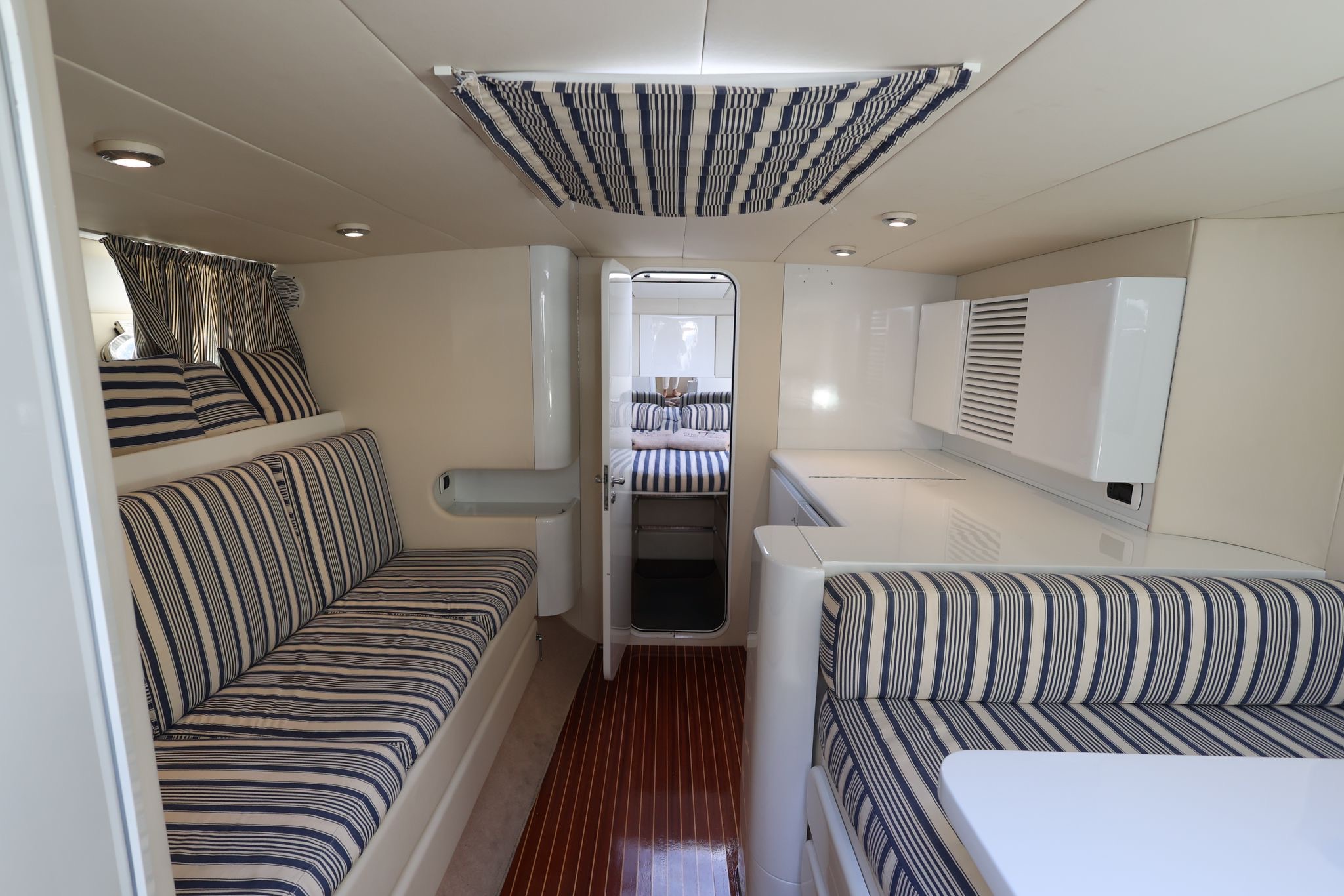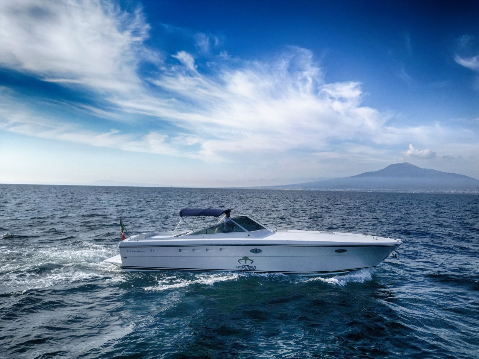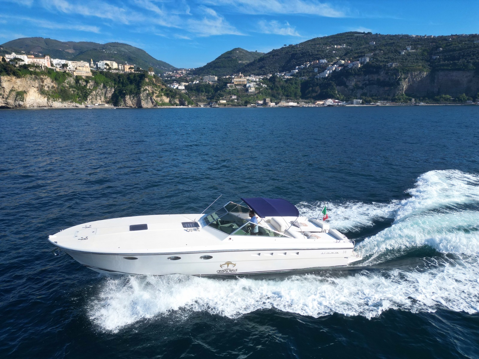 The Itama 38 stands as a testament to Italian craftsmanship, seamlessly blending high performance with timeless elegance. This open cruiser offers both speed and stability. Its deep V-shaped hull ensures smooth navigation even in challenging sea conditions. Below deck, the Itama 38 features a well-appointed cabin with a double berth and an en-suite bathroom, ensuring comfort during longer journeys. The galley is equipped with modern appliances, including a refrigerator and microwave. Entertainment options include a TV and Hi-Fi system with Bluetooth connectivity. Additional amenities comprise air conditioning, a sun awning, and safety equipment. The yacht's design emphasizes clean lines and a minimalist aesthetic, characteristic of the Itama brand. The cockpit area is spacious, featuring an L-shaped seating arrangement and a table, ideal for alfresco dining or relaxation. The aft deck includes a sunbathing area, allowing guests to enjoy the sun and sea breeze.