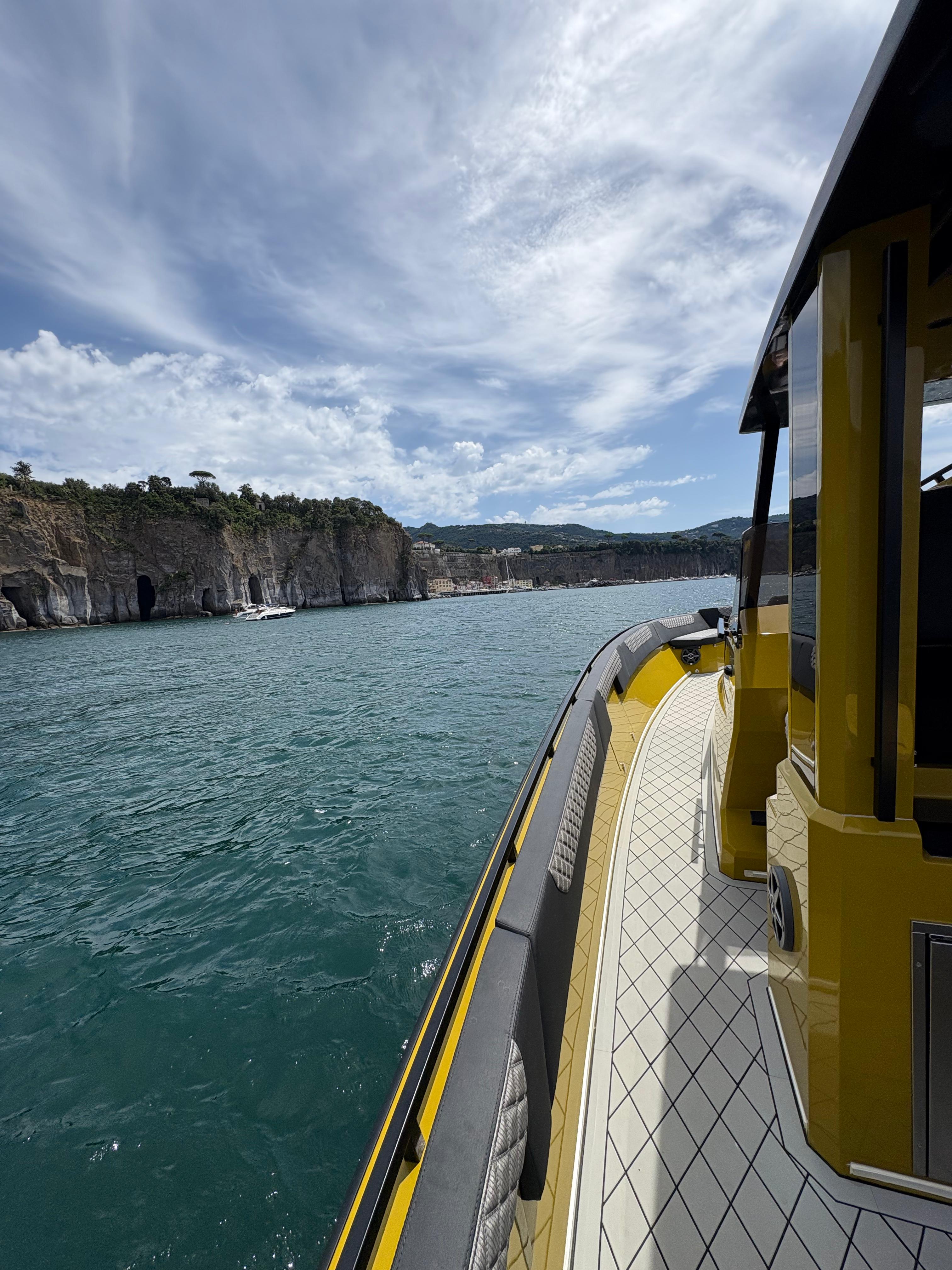 This eye-catching yellow yacht is the perfect blend of style, power, and relaxation, designed for unforgettable cruising experiences around Capri and the Amalfi Coast. With its bold modern design and high-performance build, it guarantees both thrilling navigation and maximum comfort at sea. Onboard, guests can enjoy spacious sunbathing areas, a comfortable shaded cockpit with premium seating, and state-of-the-art navigation equipment for a smooth and safe ride. Whether anchoring in hidden coves for a swim, exploring iconic spots like the Faraglioni rocks, or enjoying a sunset cruise with a glass of prosecco, this yacht offers the ultimate private boating experience. Ideal for small groups, couples, or families, it’s the perfect choice for those who want to explore the coast in complete privacy, luxury, and speed.