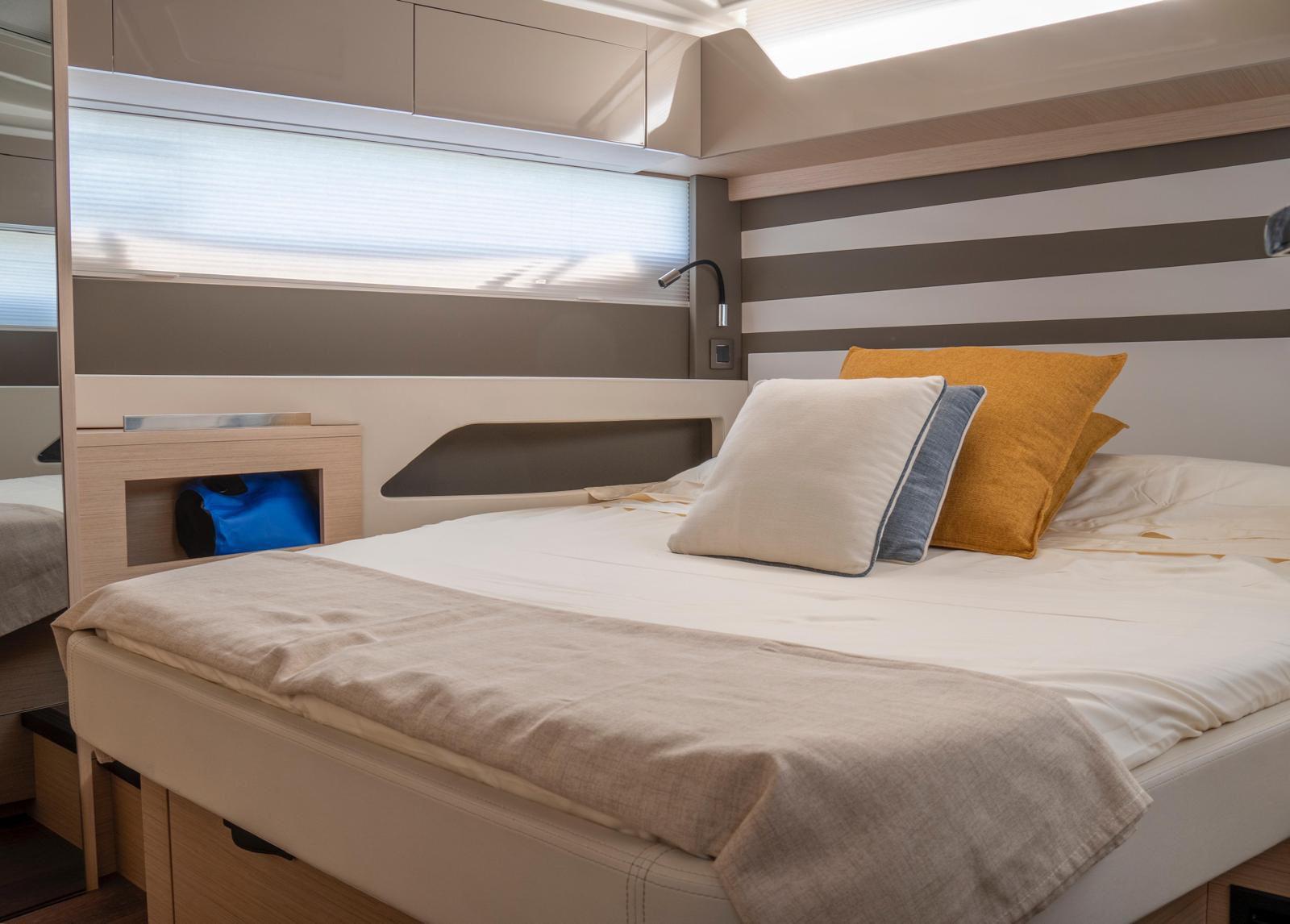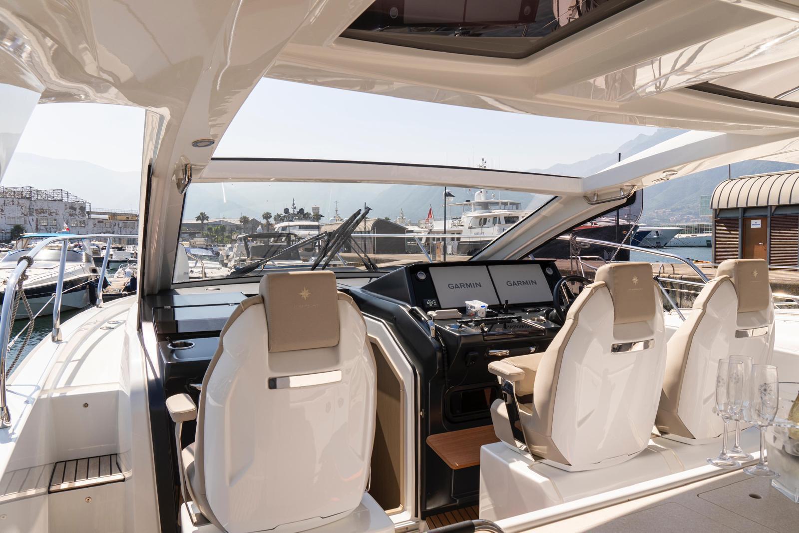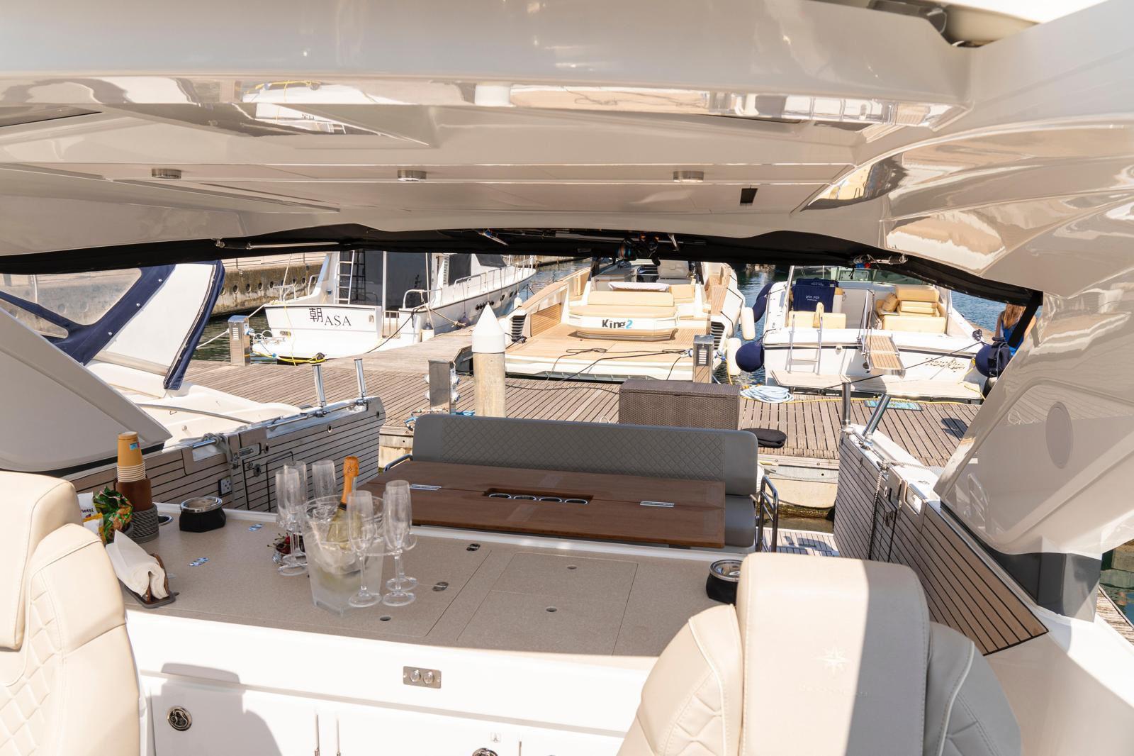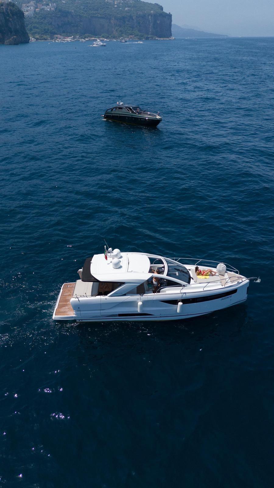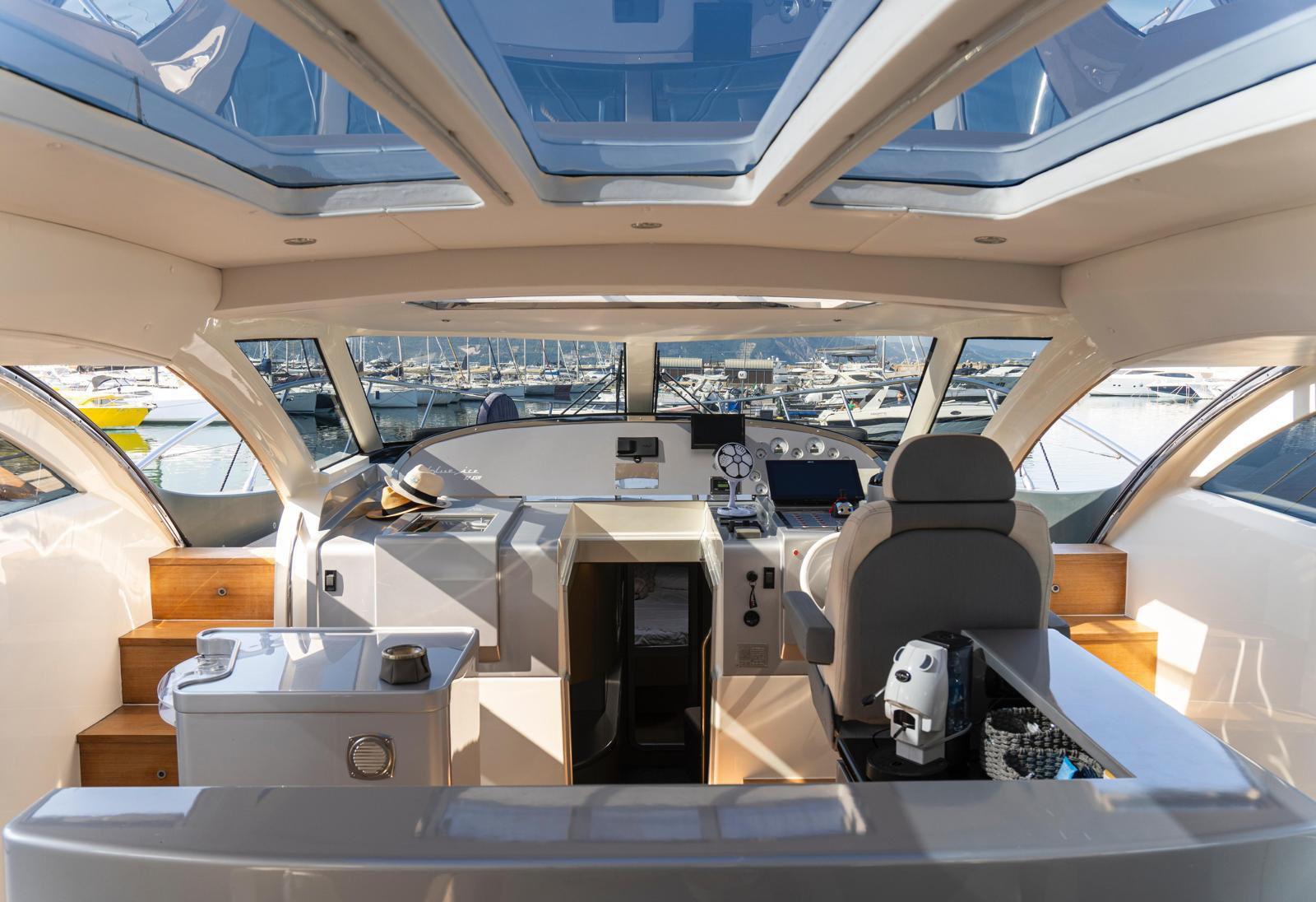 The Jeanneau DB/43 represents a new generation of premium day boats, combining luxury, performance, and innovative design. One of the defining features of the DB/43 is its open, sociable deck layout. Two large electrically opening side terraces transform the cockpit into a spacious beach-club area, providing direct access to the water and expanding the usable deck space for relaxation and entertainment. This design allows guests to fully enjoy life at sea while maintaining exceptional comfort on board. The cockpit is designed as a true outdoor living area, featuring comfortable seating, a large dining space, and a fully equipped galley with grill, refrigerator, and sink, perfect for hosting friends or family during a day at anchor. A protective hardtop ensures shade and comfort while maintaining the yacht’s sporty profile. Below deck, the DB/43 offers elegant and practical accommodation with two cabins and up to five berths, including a spacious owner’s cabin and a guest cabin. High-end finishes and thoughtful design create a warm, refined atmosphere for overnight stays. Designed to host up to 12 people on board, the Jeanneau DB/43 is the perfect balance between luxury day cruising and weekend getaway capability.