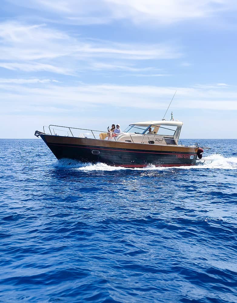 The Aprea 36 Supergozzo represents the perfect evolution of the traditional Sorrentine gozzo, combining timeless Italian elegance with enhanced space, performance, and onboard comfort. Crafted by the historic Fratelli Aprea shipyard, this model preserves classic lines and fine wooden details while integrating modern naval engineering for smooth, confident cruising. With its generous beam and well-balanced hull, the Supergozzo 36 offers exceptional stability at sea and outstanding comfort both underway and at anchor. The spacious foredeck is ideal for sunbathing, while the protected cockpit provides a refined social area with seating and dining space, perfect for relaxing moments along the coast. Below deck, the interiors are warm and welcoming, finished with high-quality materials and smart layouts designed for extended day cruises or weekend escapes. Every detail reflects the craftsmanship and heritage that have made Aprea gozzi an icon of Mediterranean boating. Powerful yet efficient twin diesel engines ensure effortless navigation and reliable performance, making the Aprea 36 Supergozzo ideal for cruising iconic destinations in total comfort and style. A boat for true connoisseurs, the Aprea 36 Supergozzo is not just a vessel, but a statement of tradition, elegance, and authentic Italian lifestyle at sea.