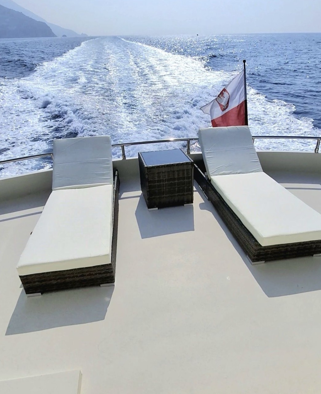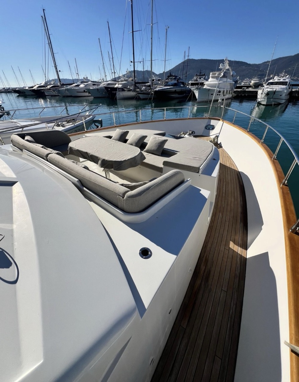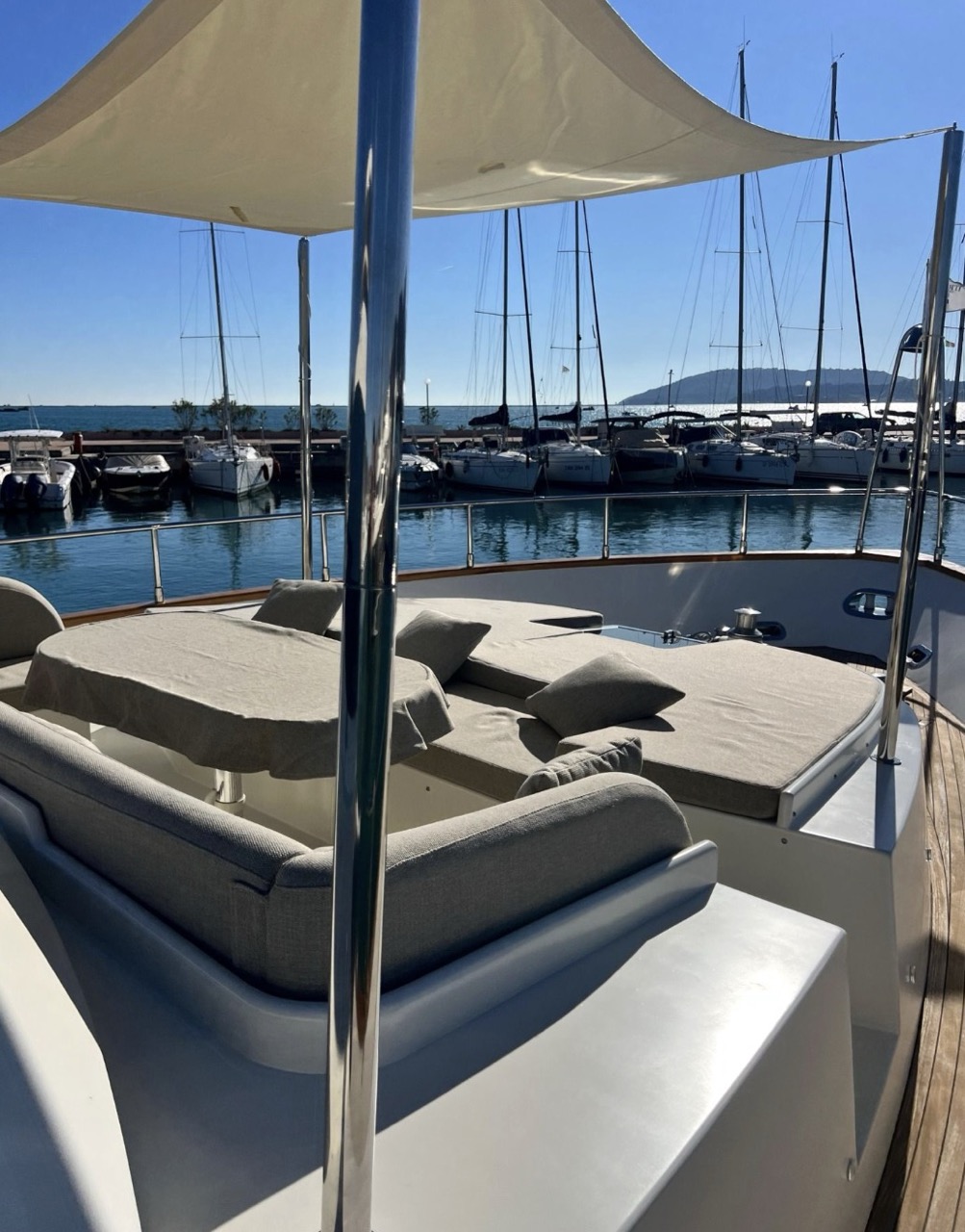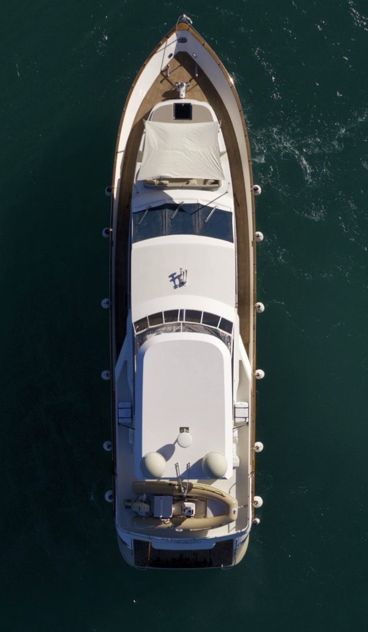 Discover the magic of the sea aboard the prestigious Falcon 80 Fly, a yacht with unmistakable charm that combines classic elegance, excellent performance, and absolute comfort, complemented by a friendly, professional, and helpful crew. Built in 2000 and completely refitted in 2024, this yacht offers refined interiors equipped with state-of-the-art technology, advanced home automation, and exceptional seaworthiness. Main features: • 2 MTU 1000 hp engines • Air conditioning • Bluetooth music system • Jacuzzi • 2 SUPs • Maximum capacity: 40 people • Fully equipped kitchen • Spacious saloon • Cabins: 4 cabins with 4 bathrooms (8 berths in total) • Bow living area with table and sun deck • Spacious flybridge and large sun decks for relaxation and socializing • 5-meter tender with 40 hp engine, ideal for exploring hidden coves and crystal clear waters.
