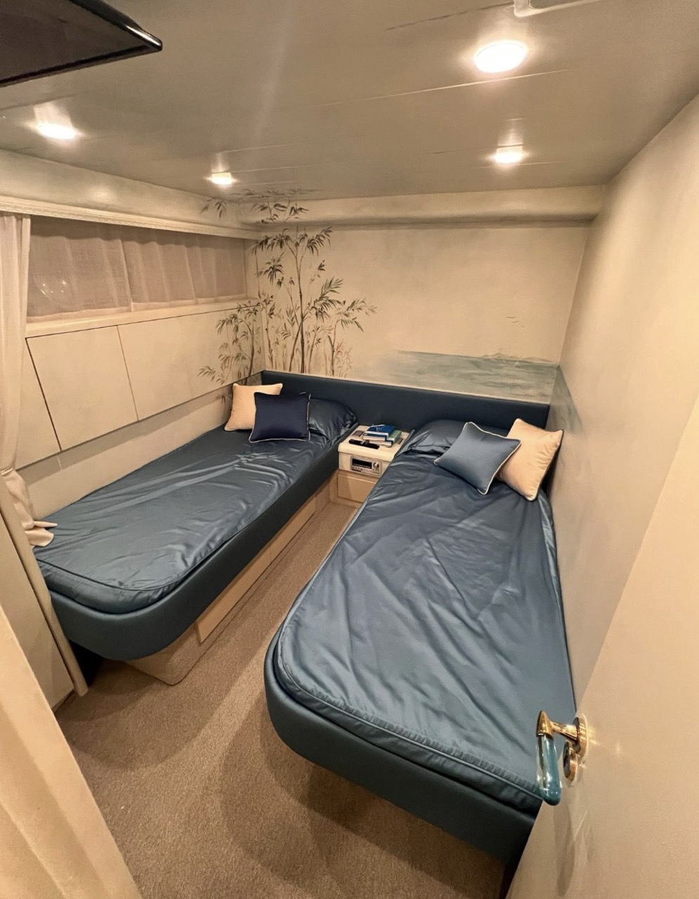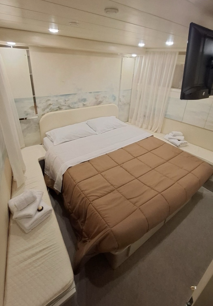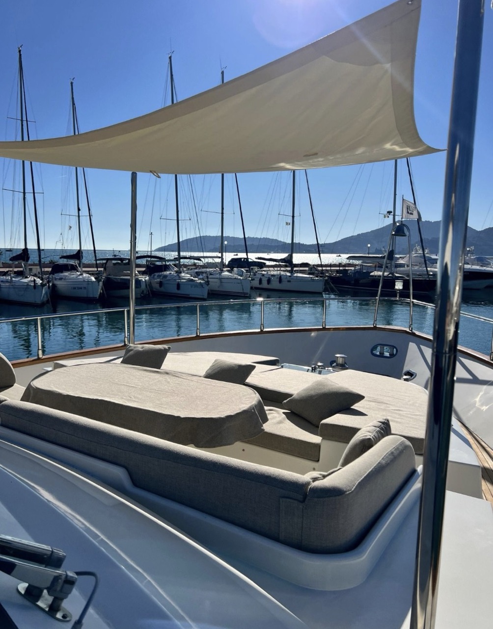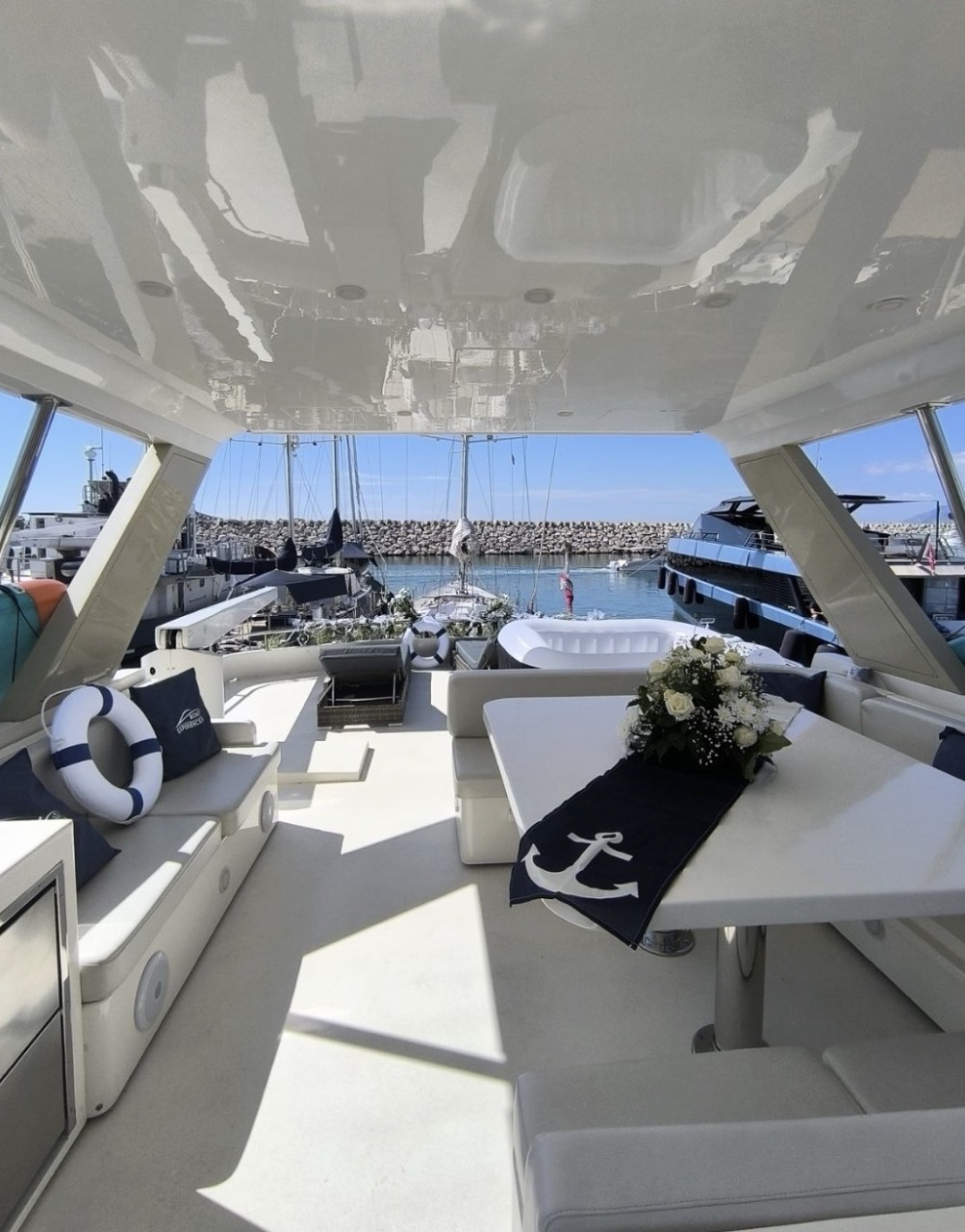 Discover the magic of the sea aboard the prestigious Falcon 80 Fly, a yacht with unmistakable charm that combines classic elegance, excellent performance, and absolute comfort, complemented by a friendly, professional, and helpful crew. Built in 2000 and completely refitted in 2024, this yacht offers refined interiors equipped with state-of-the-art technology, advanced home automation, and exceptional seaworthiness. Main features: • 2 MTU 1000 hp engines • Air conditioning • Bluetooth music system • Jacuzzi • 2 SUPs • Maximum capacity: 40 people • Fully equipped kitchen • Spacious saloon • Cabins: 4 cabins with 4 bathrooms (8 berths in total) • Bow living area with table and sun deck • Spacious flybridge and large sun decks for relaxation and socializing • 5-meter tender with 40 hp engine, ideal for exploring hidden coves and crystal clear waters.