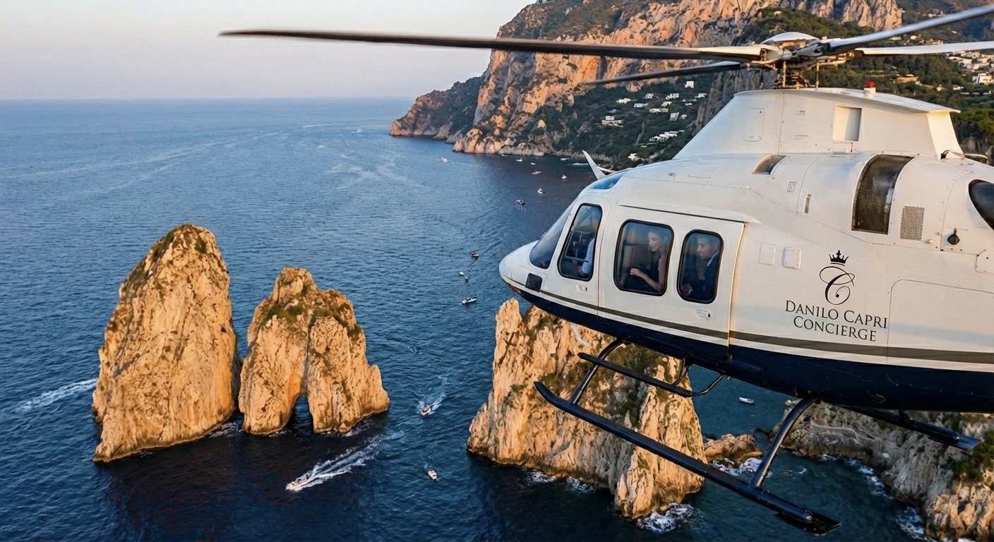 Private VIP Helicopter transfer from Capri Island (Damecuta Airport) to Naples Capodichino. The 20-minute flight offers a fast, exclusive, and scenic journey. The service includes a ground transfer from your hotel in Capri to the Helipad, ensuring a seamless and luxurious door-to-heli experience. All taxes included. Once your booking is confirmed, our office will contact you to request your IDs and verify your luggage details.