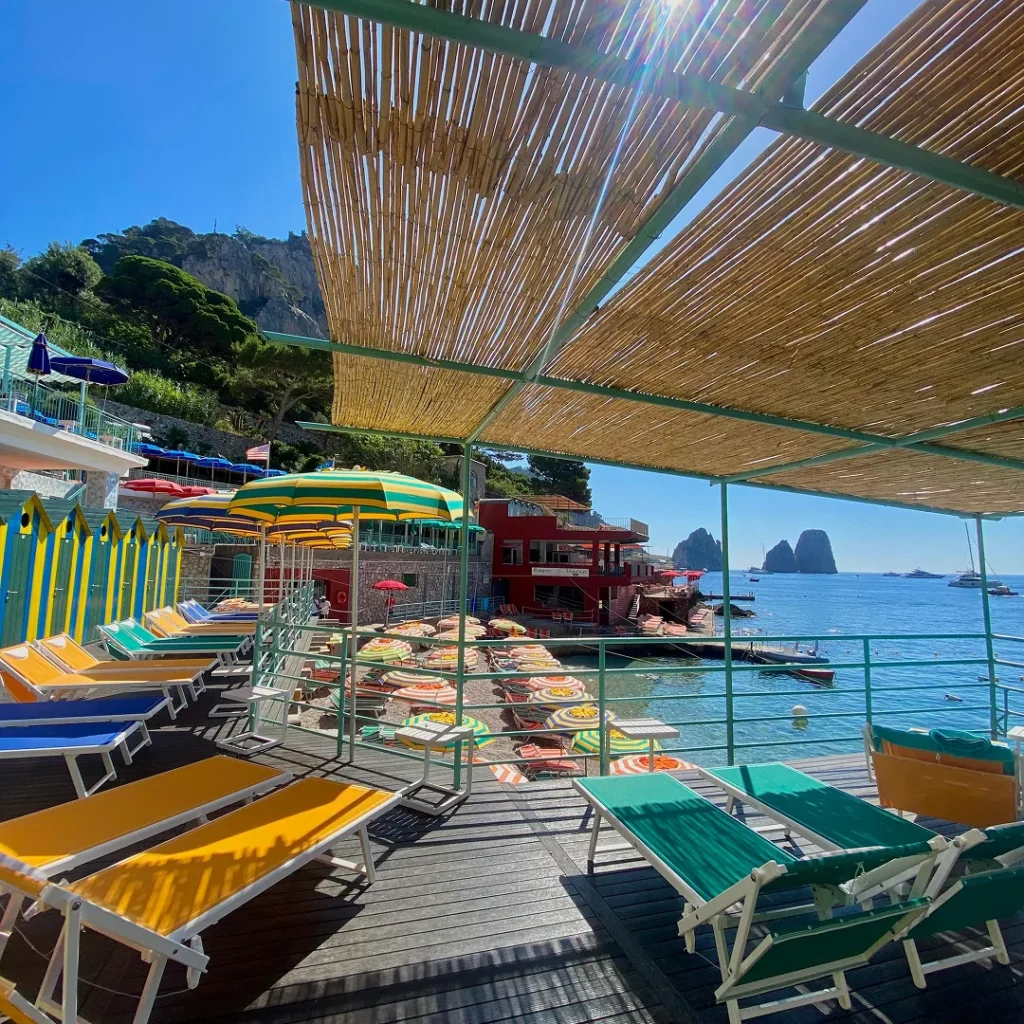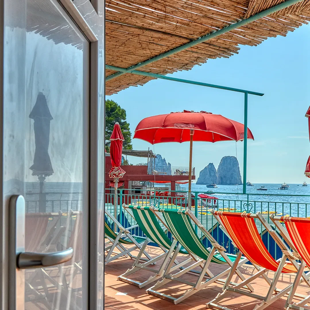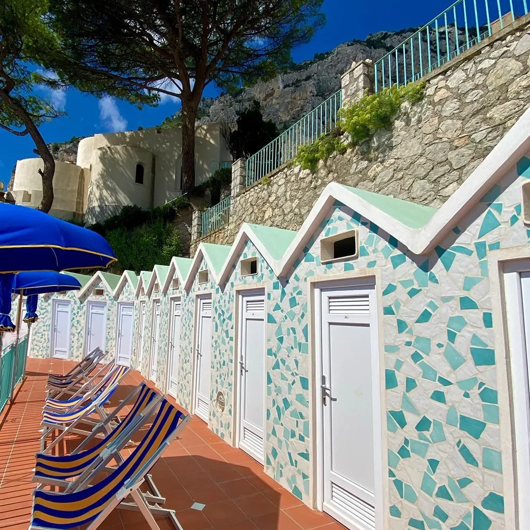 From the splendid Marina Piccola beach, one of Capri’s most evocative settings, Bagni Internazionali offers a complete experience amidst crystal-clear sea, traditional cuisine, and authentic Capri hospitality. With an area of approximately 3000 m2, Bagni Internazionali Capri are spread over several levels, overlooking the sea, offering a complete bathing experience designed for those who want to enjoy the sea in total relaxation and comfort. Each space is designed to ensure tranquility, privacy, and freedom of choice in an elegant and harmonious setting.