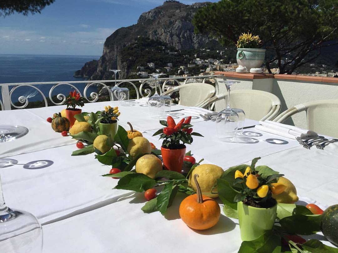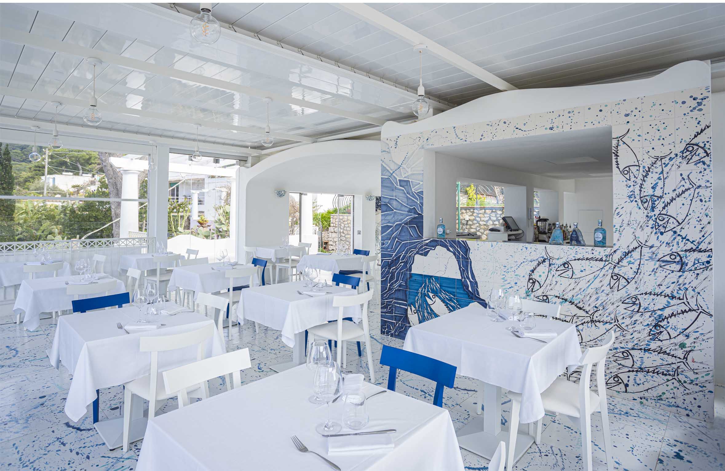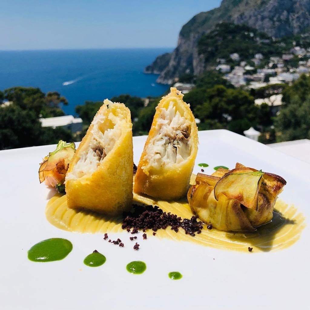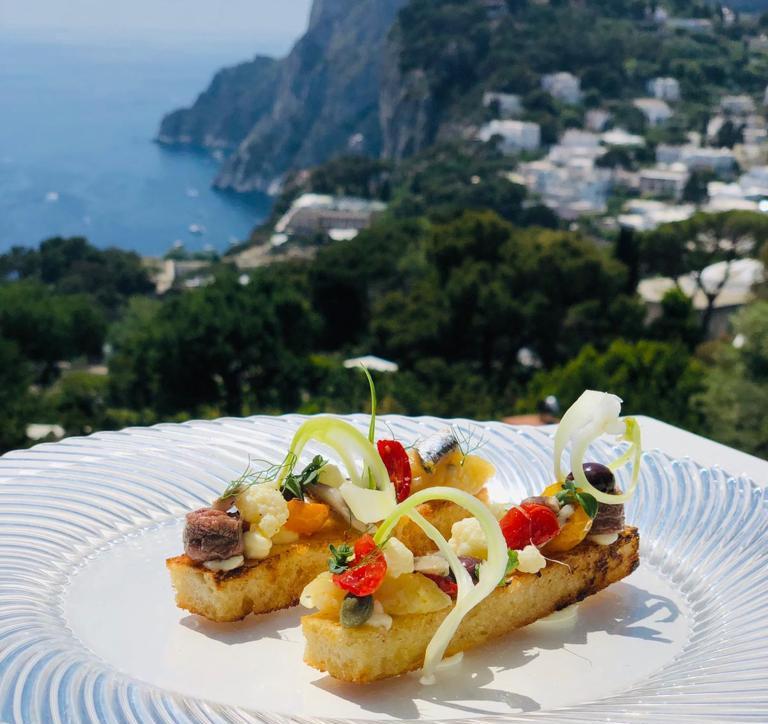 La Palette Restaurant in Capri offers Mediterranean cuisine with a touch of refined exclusivity, featuring the freshest ingredients selected daily by the chef, as well as locally sourced fruits and vegetables harvested from the gardens surrounding the restaurant. The menu takes guests on a true culinary journey through local flavors, featuring the chef’s spectacular reinterpretations. The dining experience is complemented by an extensive wine cellar featuring over four hundred labels, managed by the maître d’ and sommelier. The selection boasts exceptional local and regional Italian wines, along with excellent French champagnes. In addition, the restaurant features a well-stocked bar; our staff specializes in cocktails and long drinks, and our selection is enhanced by a variety of grappas, gins, and rums from around the world.