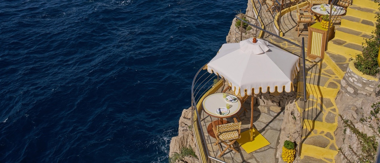 Perched above the sea in Gradola, with panoramic views toward the Blue Grotto, a-Ma-Re Capri offers a relaxed yet refined dining experience that captures the vibrant spirit of the island. Part of Jumeirah Capri Palace, it blends Neapolitan cuisine, fresh seafood, and signature artisanal pizzas in a scenic seaside setting that feels both elegant and effortlessly Capri.