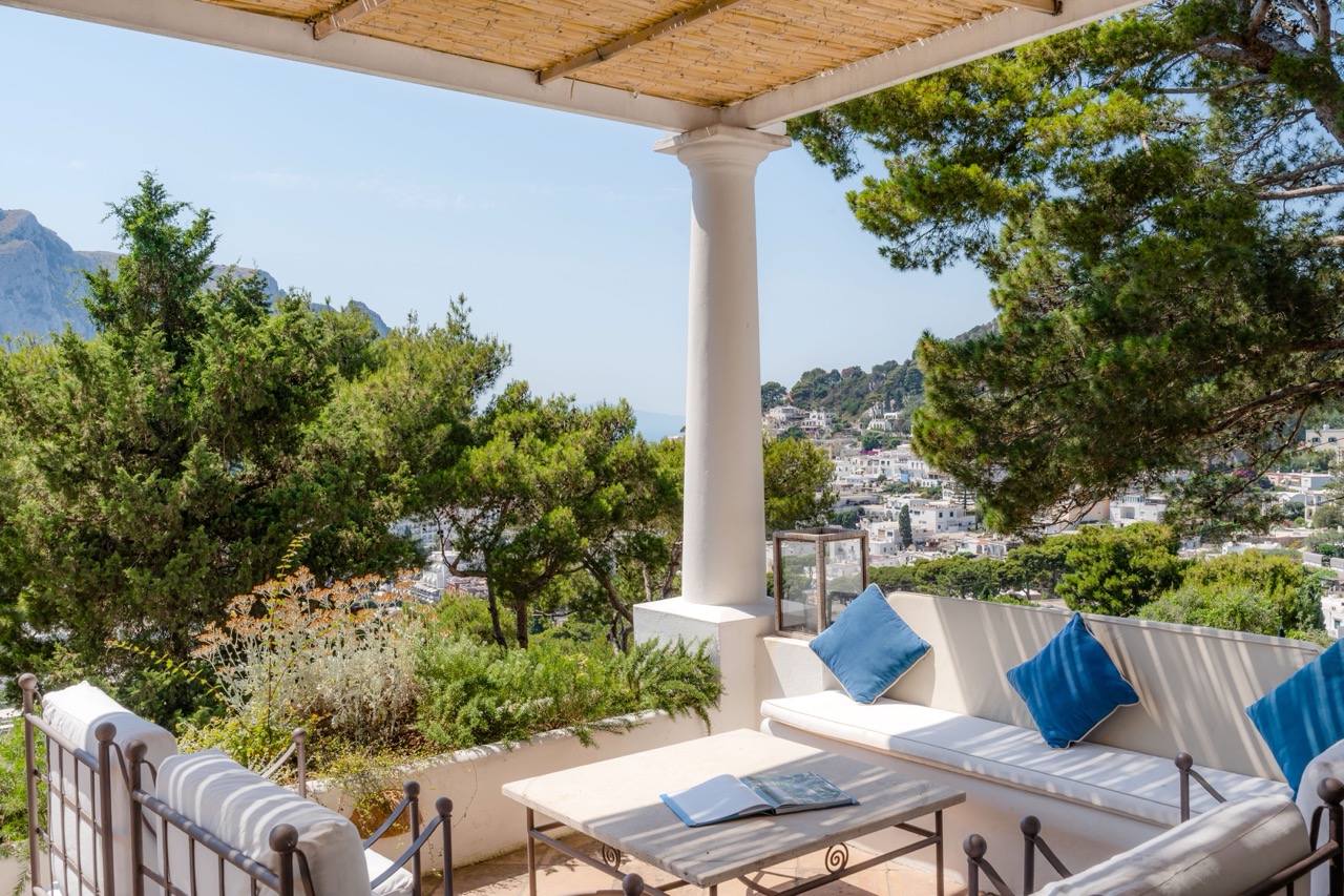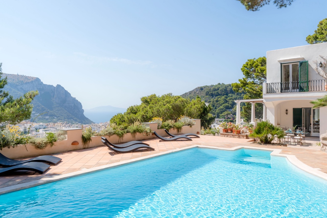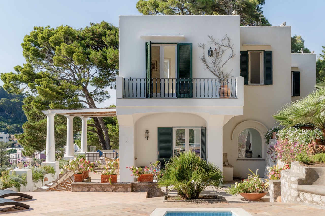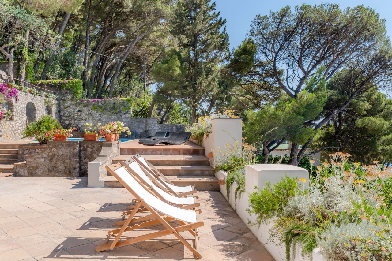 This is an invitation to experience Capri in its most refined and authentic form. Just a 13-minute stroll from the iconic Piazzetta, this exclusive retreat strikes the perfect balance between serene privacy and immediate access to the island’s vibrant heart. Spread across two levels, the villa comfortably hosts up to eight guests in bright, elegantly appointed interiors. Three main bedrooms, along with a welcoming guest room, feature two king-size beds and two French-style king beds, offering a restful and stylish haven for all. At the heart of the property lies a spectacular panoramic terrace, an outdoor living room with sweeping views over Capri’s lush landscape and the shimmering Mediterranean. Whether you're savoring a quiet morning coffee or enjoying an evening under the stars, the atmosphere is one of effortless beauty and tranquility. While the villa ensures a fully independent and private setting, an adjacent semi-detached property may occasionally be occupied by the owners or villa staff. Their presence is discreet and non-intrusive, contributing to a seamless, well-serviced stay without compromising the sense of exclusivity. It is more than a home; it is a sanctuary of excellence, where time slows down, and the timeless charm of Capri takes center stage.