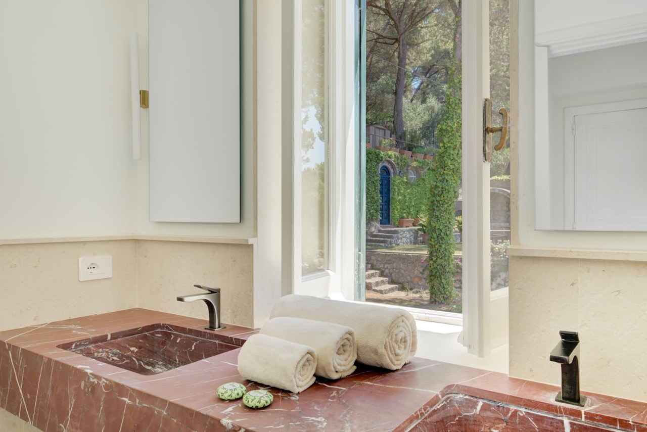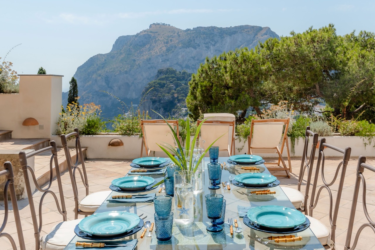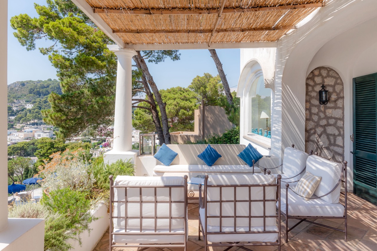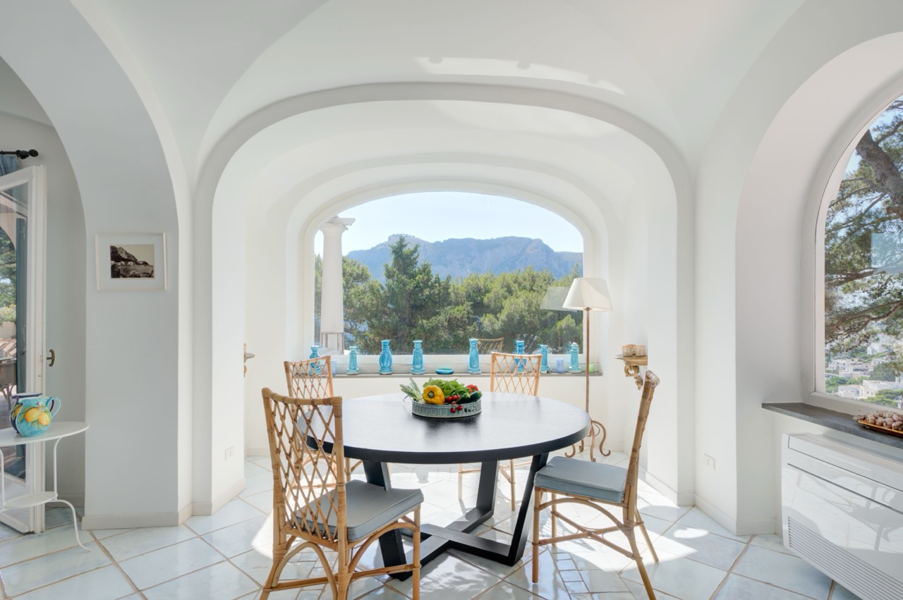 This is an invitation to experience Capri in its most refined and authentic form. Just a 13-minute stroll from the iconic Piazzetta, this exclusive retreat strikes the perfect balance between serene privacy and immediate access to the island’s vibrant heart. Spread across two levels, the villa comfortably hosts up to eight guests in bright, elegantly appointed interiors. Three main bedrooms, along with a welcoming guest room, feature two king-size beds and two French-style king beds, offering a restful and stylish haven for all. At the heart of the property lies a spectacular panoramic terrace, an outdoor living room with sweeping views over Capri’s lush landscape and the shimmering Mediterranean. Whether you're savoring a quiet morning coffee or enjoying an evening under the stars, the atmosphere is one of effortless beauty and tranquility. While the villa ensures a fully independent and private setting, an adjacent semi-detached property may occasionally be occupied by the owners or villa staff. Their presence is discreet and non-intrusive, contributing to a seamless, well-serviced stay without compromising the sense of exclusivity. It is more than a home; it is a sanctuary of excellence, where time slows down, and the timeless charm of Capri takes center stage.
