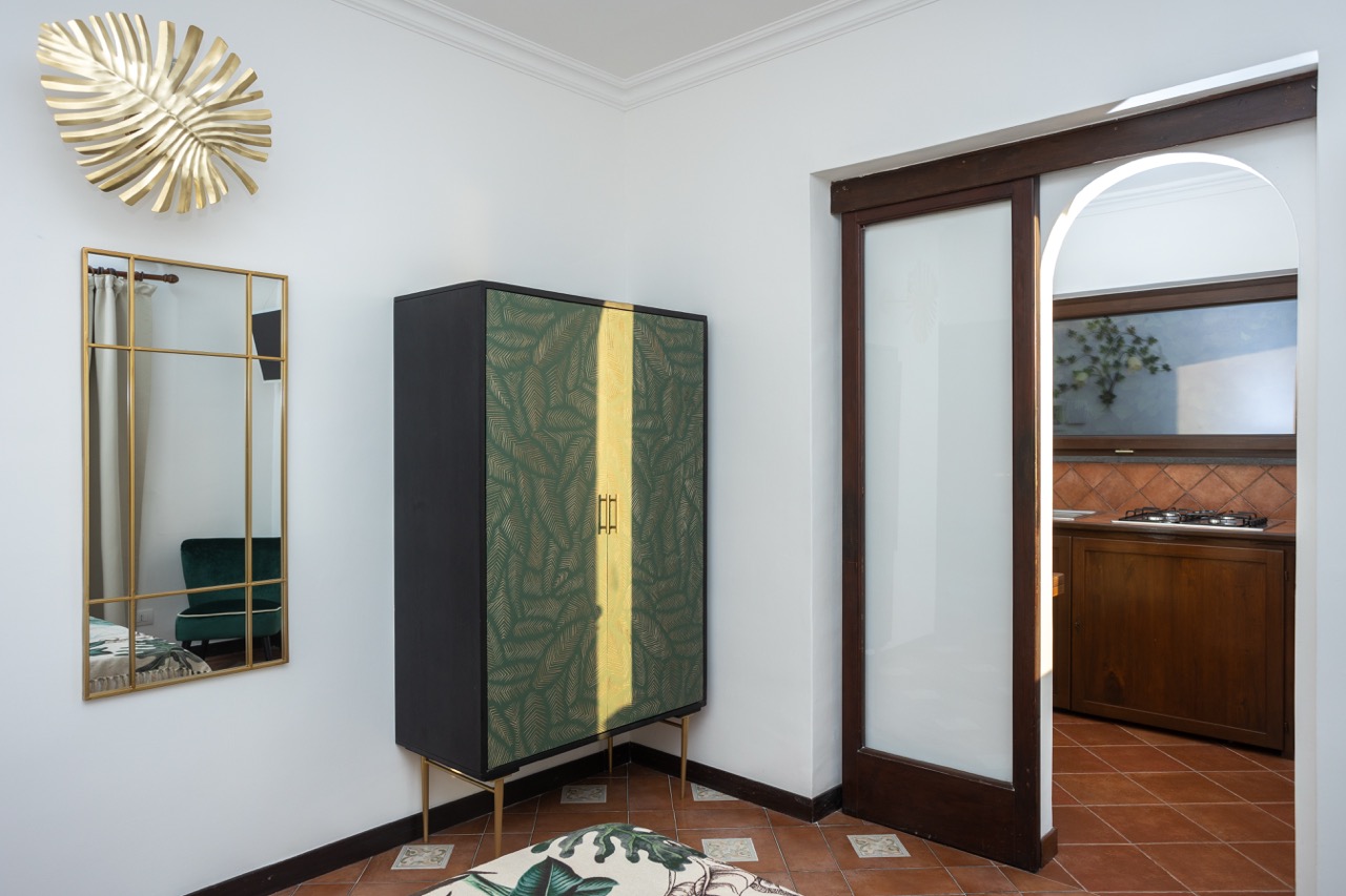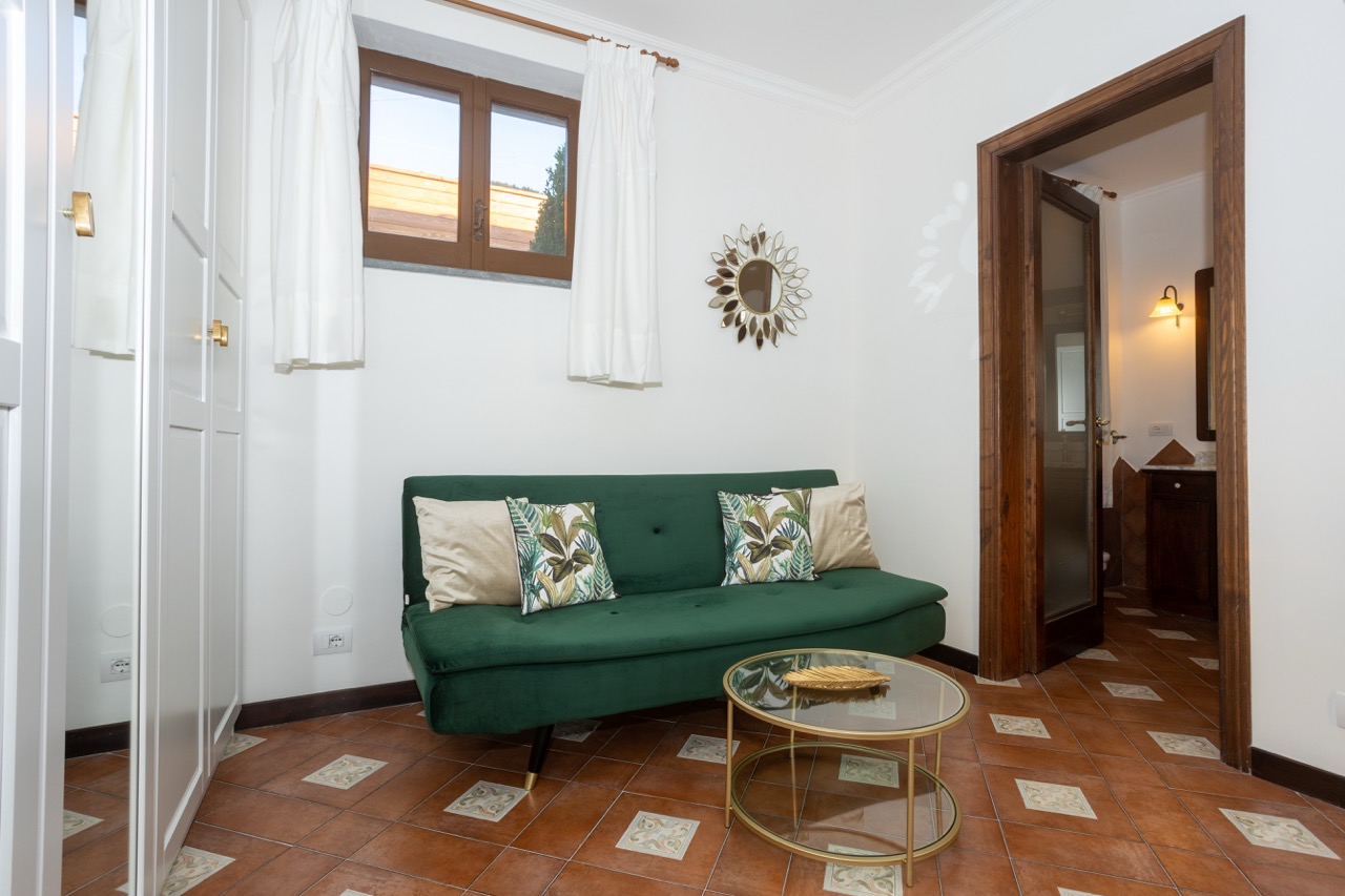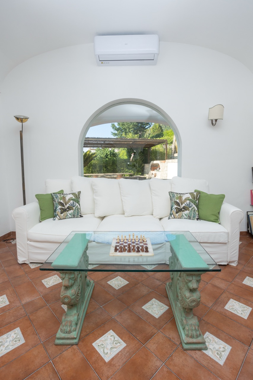 A corner of paradise, where the beauty of the Mediterranean meets the warmth of Italian hospitality. Here, every detail is designed to make guests feel at home, surrounded by the light, tranquility, and nature of the island. Spacious and comfortable spaces invite guests to relax and enjoy life, with the panorama of Anacapri as a backdrop. This villa is the ideal place to immerse yourself in the beauty and tranquility of Anacapri. The villa has three double bedrooms, each with a unique style that combines elegance and comfort. Furnished with care, the rooms reflect the warmth of the Mediterranean through refined details and light tones that enhance the natural light. The large windows not only offer breathtaking views of the surrounding landscape, but also let in the fresh sea breeze, enriching the atmosphere with the typical scents of the island. Each room is equipped with a private bathroom to ensure maximum comfort and privacy. Inside, it has two fully equipped kitchens, perfect for those who want to prepare delicious dishes with local ingredients. The walk-in closet offers a practical and functional space to better organize one's stay. The interiors cover an area of 200 square meters, while the 500 square meters outdoor area includes a relaxation area surrounded by greenery and secluded corners where you can enjoy quiet moments surrounded by the natural beauty of Anacapri. A detail that makes this villa even more unique is the presence of two separate entrances: a driveway to facilitate access with vehicles, and a pedestrian one, ideal for those who prefer to move around on foot. The villa also has convenient parking, a bonus for those who wish to explore the island independently. Imagine immersing yourself in a crystal clear pool, surrounded by nature and the silence that only Capri can offer. Or, choose to take care of your well-being in a fully equipped gym, where you can work out with a view of the island's breathtaking panorama. If your desire is simply to enjoy the sun, our comfortable loungers are ready to welcome you, offering the perfect mix of comfort and serenity. In addition, the terrace furnished with elegant tables and comfortable sofas will allow you to savor an al fresco lunch or watch a romantic sunset. Whatever your way of disconnecting from your routine, the villa offers everything you need to experience pure relaxation. Book now and discover a retreat that reflects your pace and desires